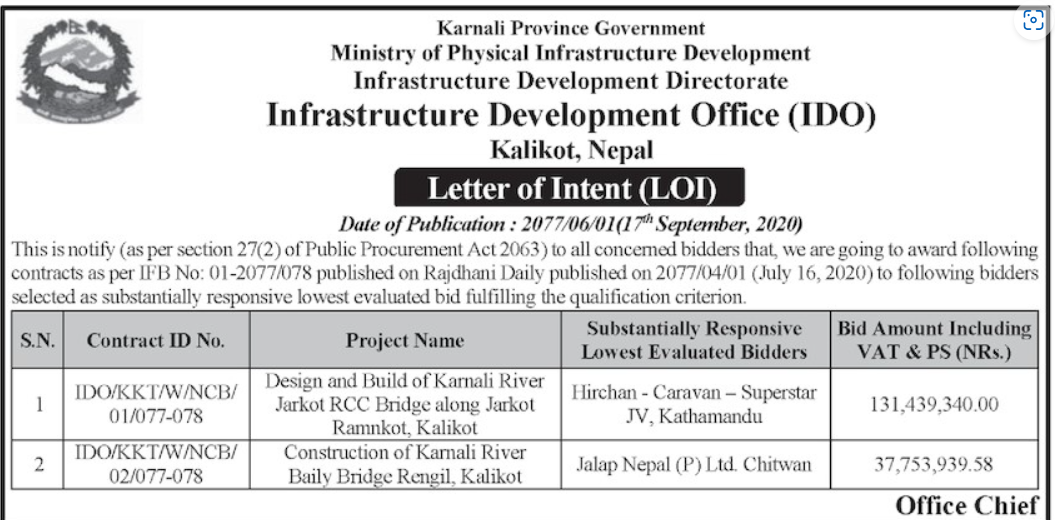 Contract Award(Letter of Intent): Selecting the winning bid and awarding the contract to the chosen supplier or contractor.